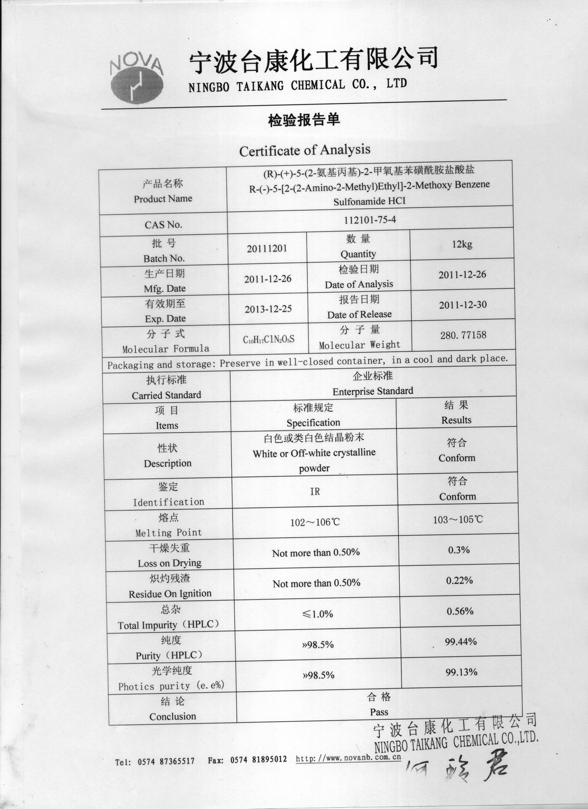 5-((r)-(2-aminopropyl))-2-methoxybenzenesulfonamide hydrochloride --NINGBO TAIKANG CHEMICAL CO.,LTD--1-(2,3-Dichlorophenyl)-piperazine hydrochloride| 1-(3-Chlorophenyl)piperazine hydrochloride| 1-Phenylpiperazine hydrochloride| FMT CAS NO. 82294-70-0| PHE CAS NO.115065-79-7
